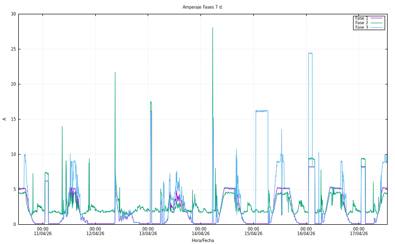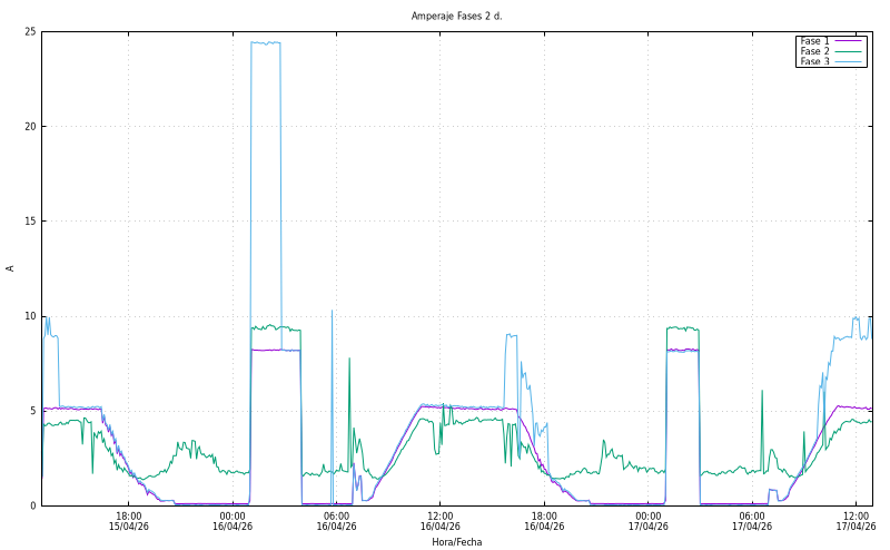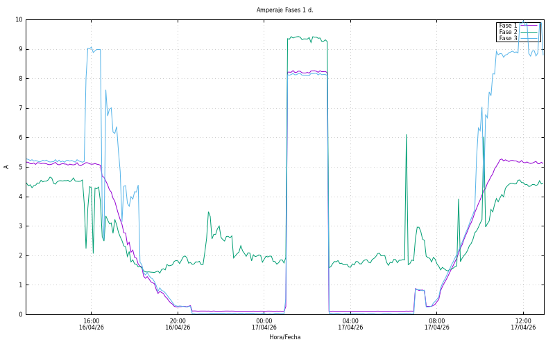 Amperatge per fase (A). Fase1: 5,23 Fase2: 4,45 Fase3: 8,93 |